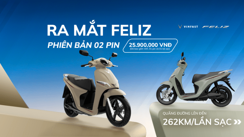 Ngày 10/09/2025, VinFast công bố ra mắt 3 mẫu xe máy điện mới gồm Vero X, Feliz và Feliz Lite với thiết kế hỗ trợ hai pin, trong đó một pin có thể tháo rời, giúp tăng quãng đường di chuyển và nâng cao sự tiện lợi, linh hoạt cho người sử dụng. Cùng với…