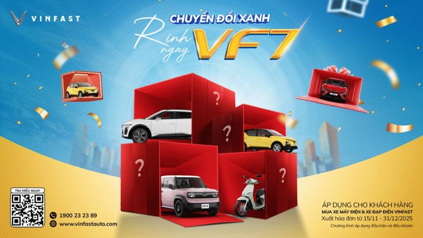 Hà Nội, ngày 14/11/2025 - VinFast công bố triển khai chương trình quay số may mắn lớn nhất từ trước đến nay dành cho khách hàng mua xe máy điện, xe đạp điện trên toàn quốc từ ngày 15/11 đến hết ngày 31/12/2025, với tên gọi “Chuyển đổi xanh - Rinh ngay VF 7”. Khách…