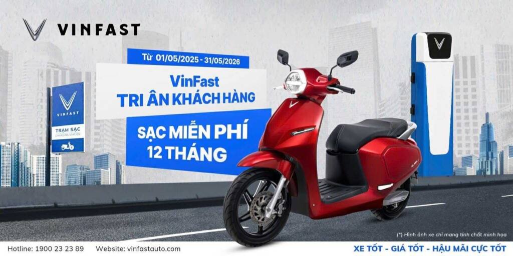VinFast Tri Ân Khách Hàng – Miễn Phí Sạc Xe Máy Điện Trong 1 Năm